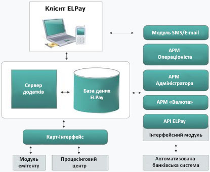 Система ELPay є новим рішенням у класі продуктів "Клієнт-Банк", націлених на надання послуг Банку віддаленому Клієнту за допомогою мережі Інтернет. Клієнт-Банку, використовуючи стандартний веб-браузер та традиційні способи виходу в Інтернет, отримує захищений доступ до свого рахунку в Банку та можливість управління фінансами з будь-якої точки світу. Дана технологія має поширену назву інтернет-банкінг (Internet Banking) і дозволяє отримати нові принципові якості: